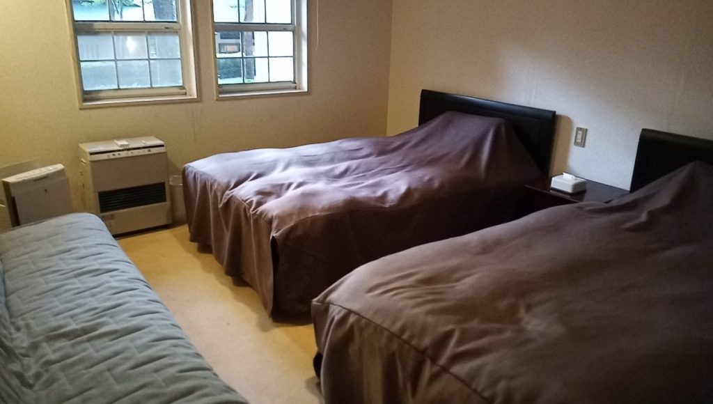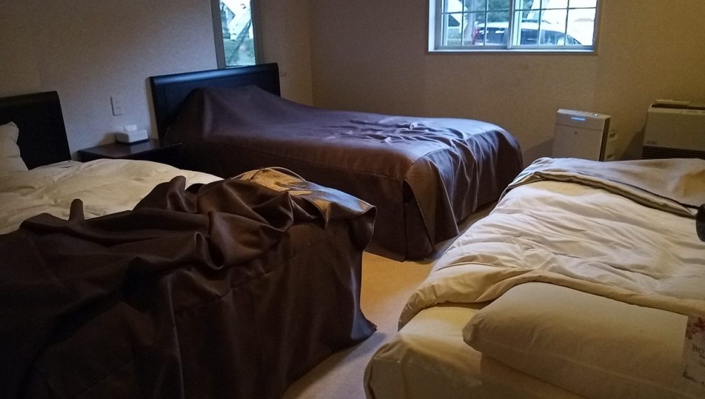 こっちに私と次男、手前の簡易ベットに母。