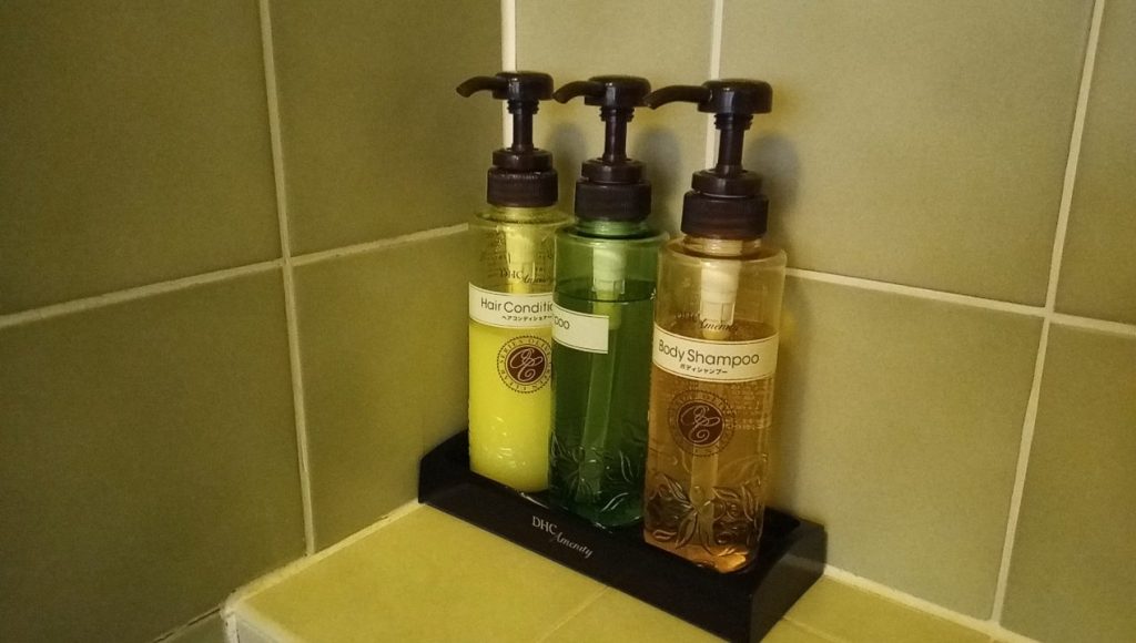 シャンプー、コンディショナー、ボディーソープ。
