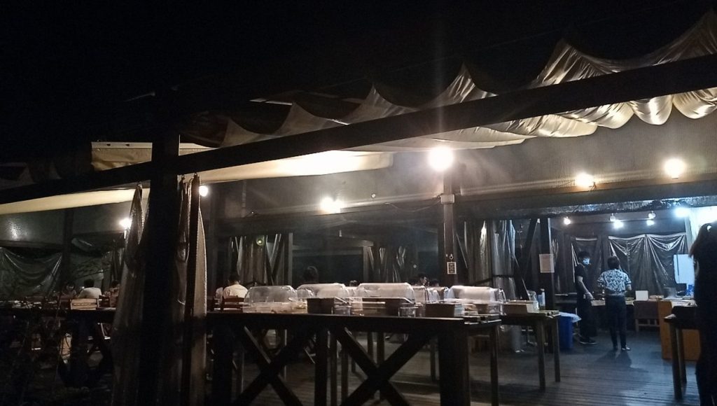 バイキング取りに行くのは面倒そうだけど、お外の席は開放的だし、安心して食べられるね。