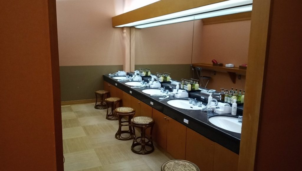 6時だからフロントに人は居ないのだけど、カウンターにバスタオルが置いてあって、新しいの使っていいみたい。