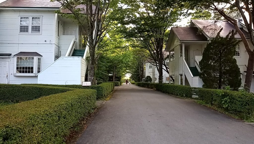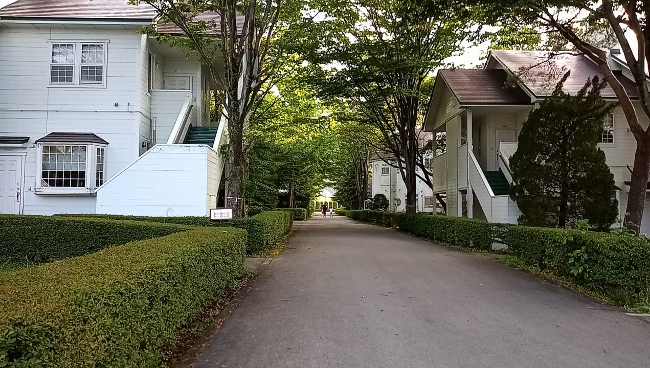 泊まってるコテージ棟から、フロントお風呂のある棟へ歩いて。