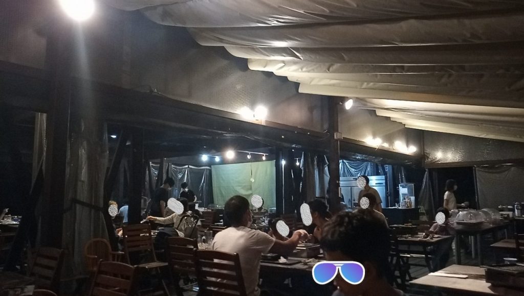 ほぼ家族連れなのでがやがやはしてるけど、屋外だし席の間隔はあいてるので密ってない感じ。